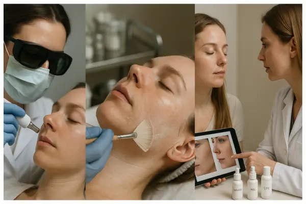 Dermatologista + prescrição de diversos produtos, tempo de tratamento prolongado, resultados lentos.
